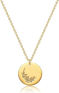 MEVECCO Birth Flower Necklace 18k Gold Engraved Custom Floral Pendant Necklaces Dainty Birth Month Flower Disc Charm Hand Stamped Flower Disk Necklace Personalized. Birth Flower Necklace - MayLily 1800 1 Quantity Add to Cart Personalized Birth Month Flower Necklaces. Floral engraved discs with the flower you were born with on a beaded chain.